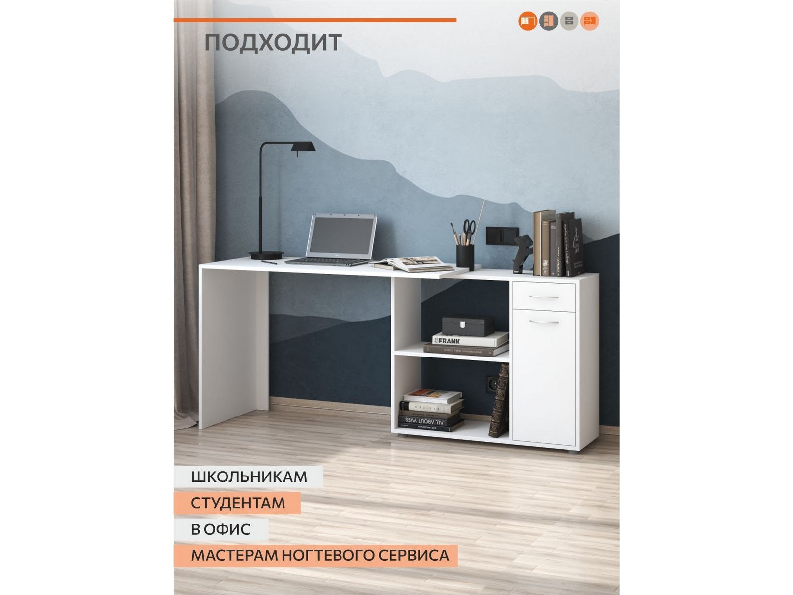 Универсальный стол трансформер подойдет школьникам, для офиса, мастерам маникюра. Угловой стол легко впишется в любое даже самое компактное пространство, а палитра цветов позволит подобрать изделие под уже имеющуюся мебель. Преимуществом стола - сборка как на левую, так и на правую сторону.