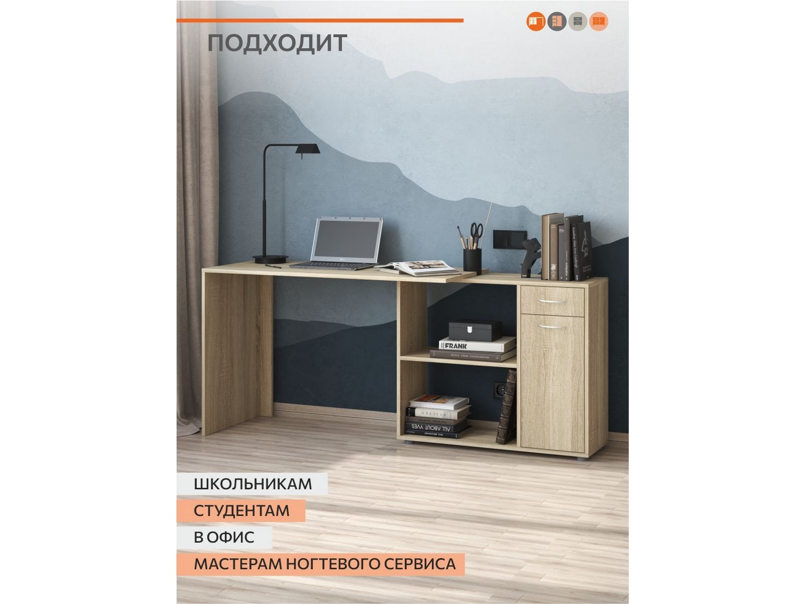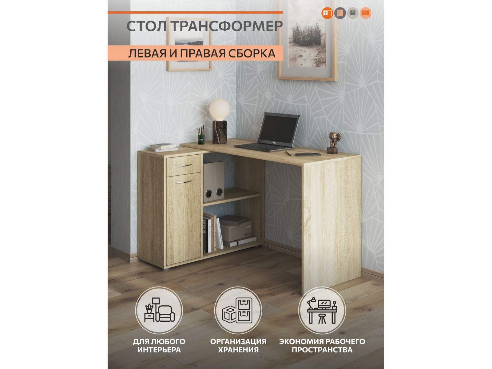 Универсальный стол трансформер подойдет школьникам, для офиса, мастерам маникюра. Угловой стол легко впишется в любое даже самое компактное пространство, а палитра цветов позволит подобрать изделие под уже имеющуюся мебель. Преимуществом стола - сборка как на левую, так и на правую сторону.